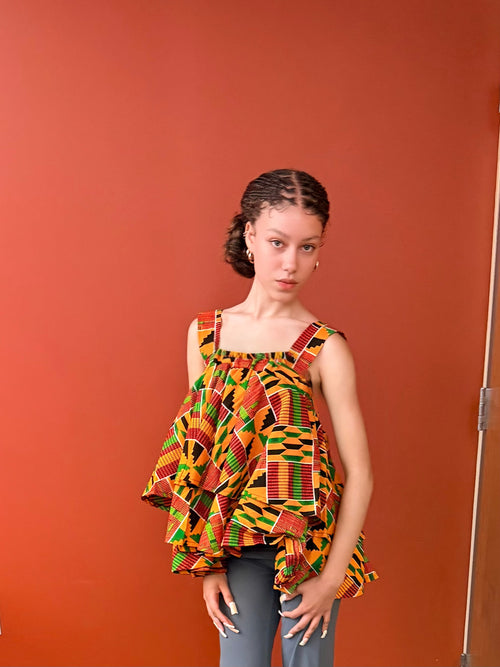 The patchwork detailing and functional cargo pockets add both edge and practicality, designed for the modern woman who loves statement pieces with cultural depth. making it a standout piece for everyday wear,